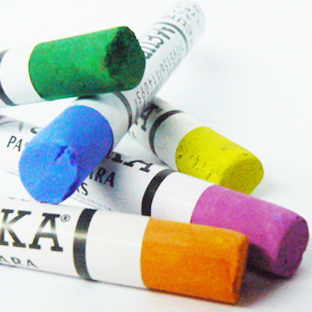 Las tizas pastel contienen pigmentos y no incluyen lubricantes ni ceras. Es posible difuminarlas para crear bonitas transiciones de color. Se puede utilizar en papel, cartón, madera y piedra. Necesitan una leve fijación para garantizar que los dibujos mantengan los colores vivos. El artista dispone de un amplio espectro de posibilidades, desde líneas suaves hasta llamativas manchas de color.