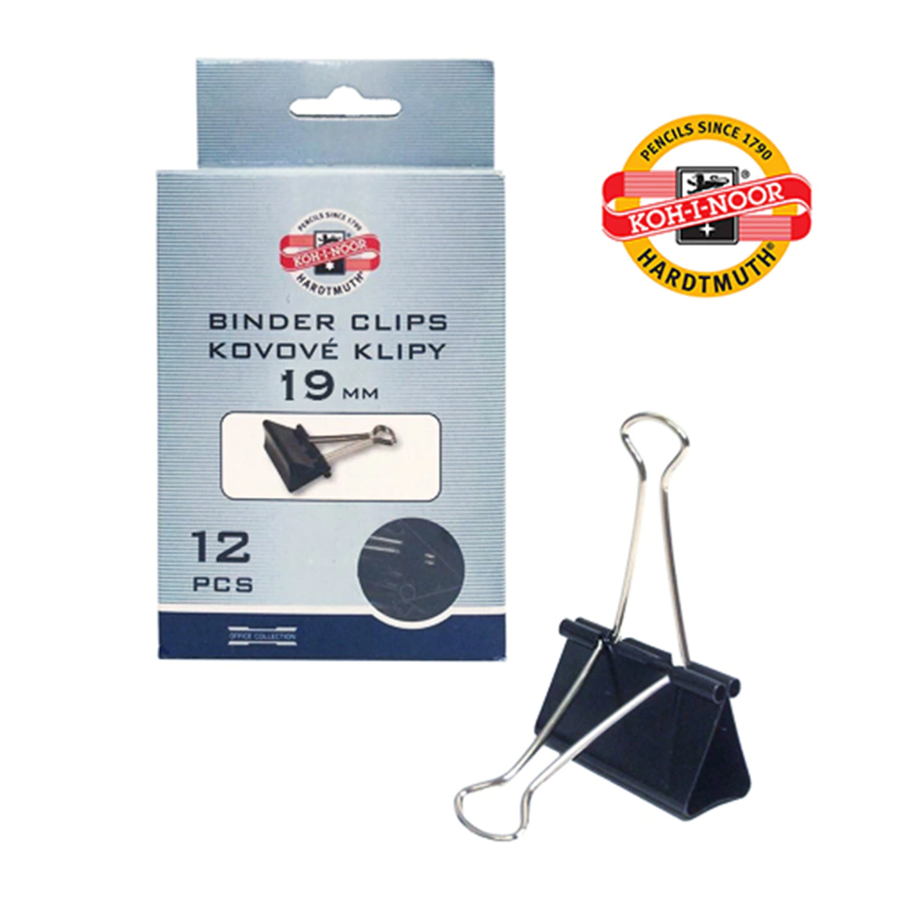 Superclip de metal Koh-I-Noor de 19 mm de ancho con brazos plegables. Fuerte y duradero: ideal para sujetar papeles sueltos y obras de arte en tableros. Caja de 12 Clips.